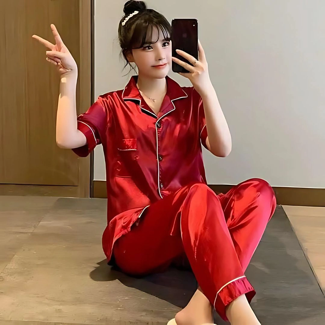The Crimson Silk Pajama Set আরাম আর শান্তির রাতের জন্য পারফেক্ট। সুন্দর imported satin silk দিয়ে তৈরি, যা আপনার ত্বকের সঙ্গে নরমভাবে মিশে যায় — ঘুমাতে বা আরাম করতে একদম ভালো লাগবে। এর rich, solid red color গরম রাতেও আপনাকে সুন্দর ও স্টাইলিশ দেখাবে। ✨🌙